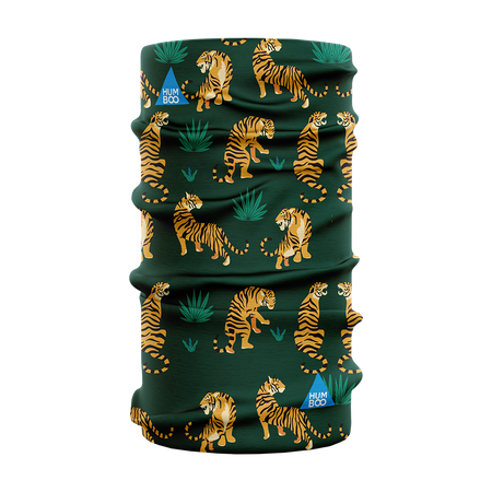 - Multifunctional scarf with a motif of majestic tigers and tropical plants on a dark green background. Exotic and stylish design for wildlife lovers. Light and airy, ideal for all seasons. Available in bulk packaging!