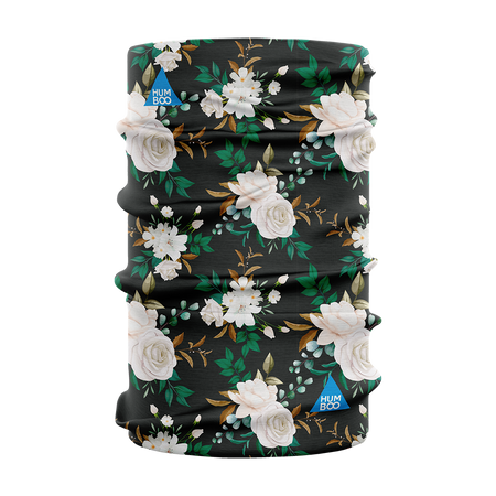 - Multifunctional scarf with a subtle floral pattern of white roses on a black background. Elegant, feminine design. Lightweight, breathable, ideal for everyday use. Available in bulk packaging!
